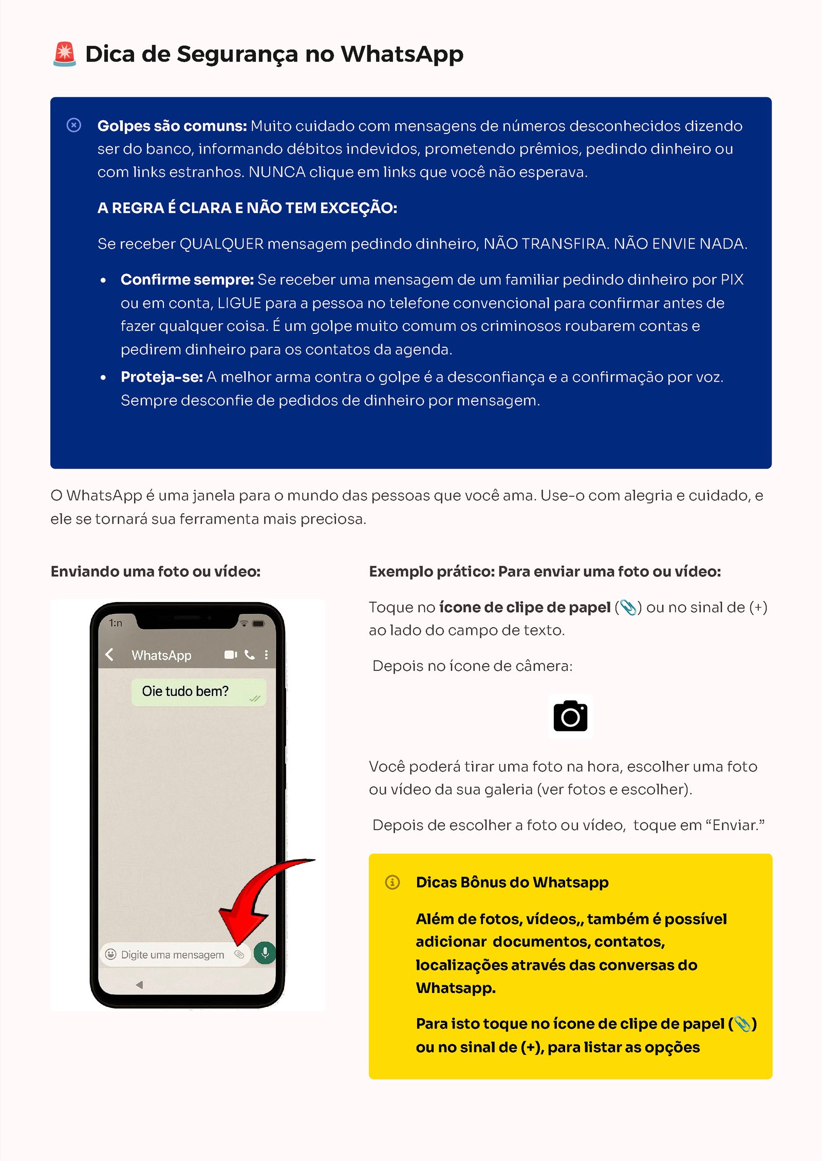 Foi criado especialmente pensando em pessoas que, como você, querem aprender sem se sentir perdidas ou constrangidas. Cada explicação foi testada com pessoas reais para garantir que seja realmente fácil de entender.